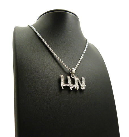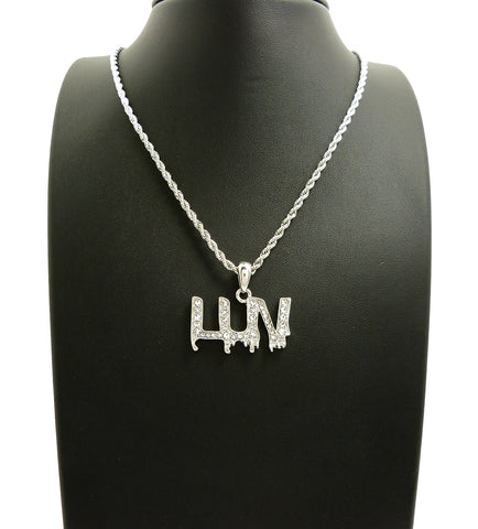 • Stone Stud LUV Drip Effect Pendant Set with Chain Necklaces