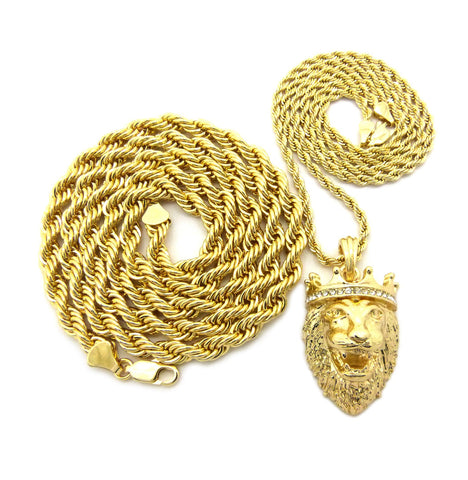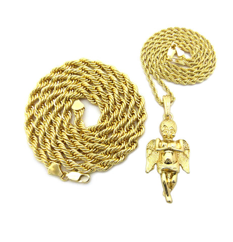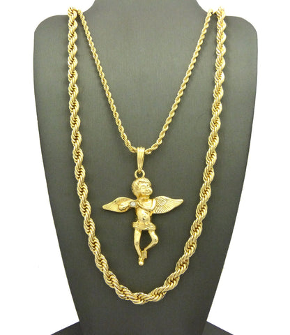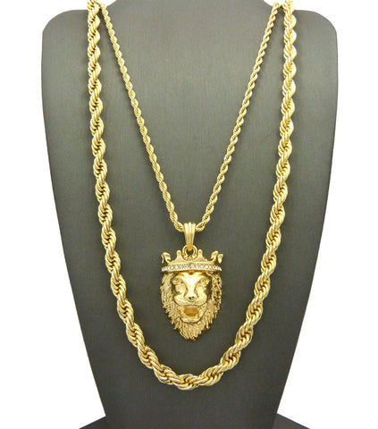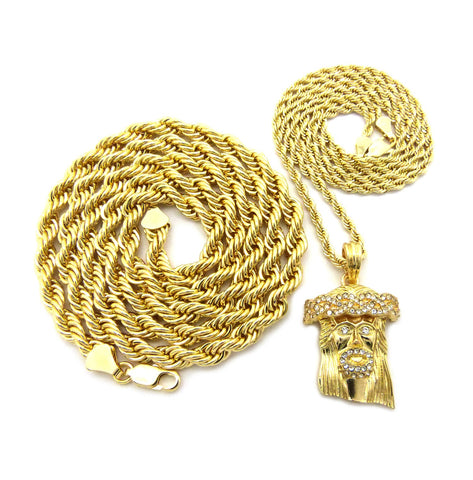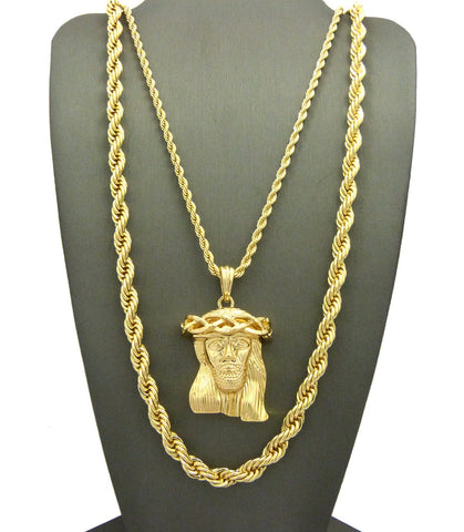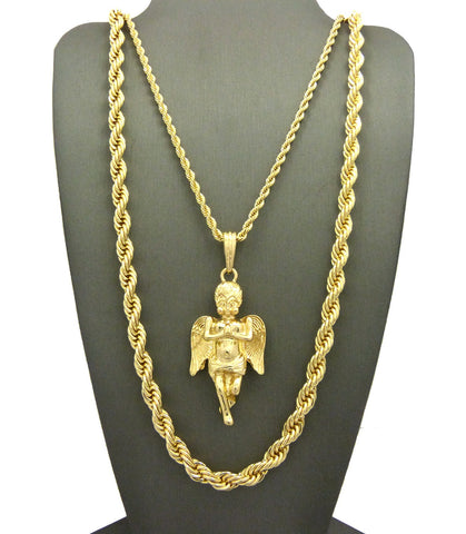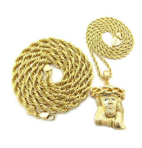 Pendant with 3mm 24" Rope Chain and 6mm 30" Rope Chain Necklace in Gold-Tone
