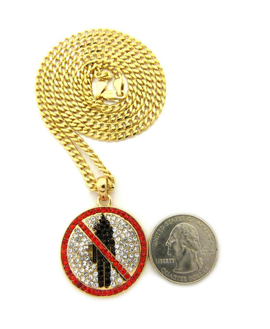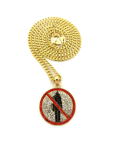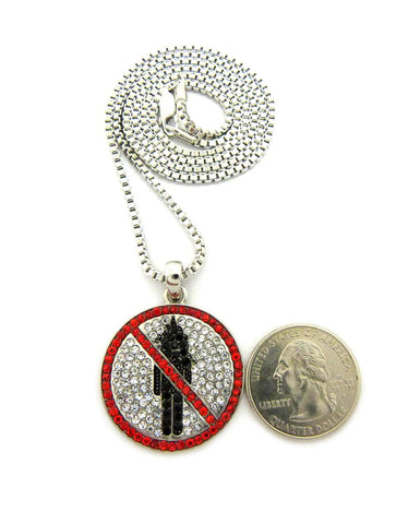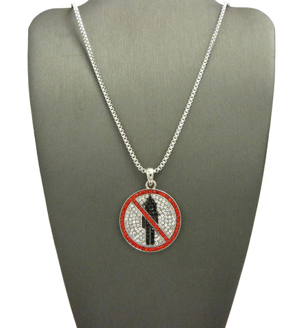 Red Stone Stud Border Mini Rapper Monster Logo Pendant w/ 24" Chain Necklace