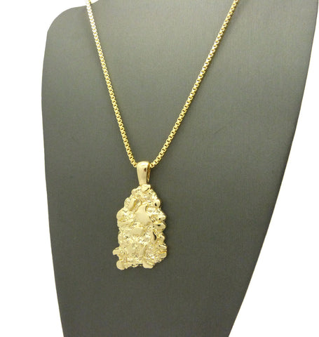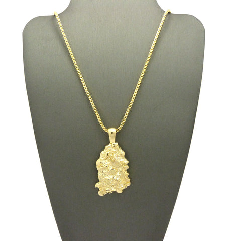 Gold-Tone Polished Chunky Nugget Pendant w/ 2mm 24" Box Chain Necklace
