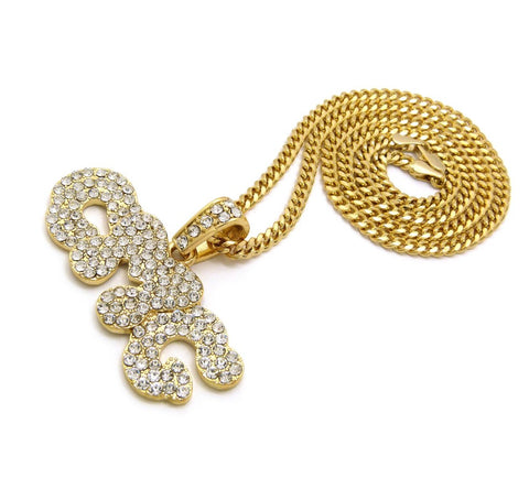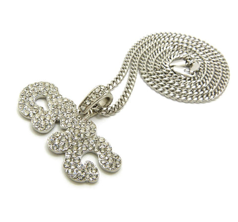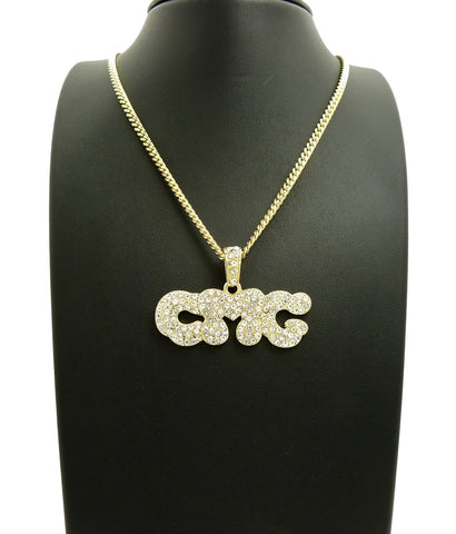 Stone Stud CMG Initials Rapper Pendant with 3mm 24" Cuban Chain Necklace