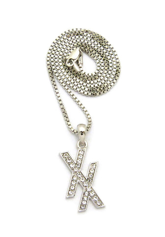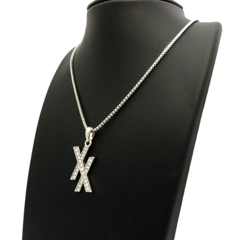 Stone Stud Double X Pendant w/ 2mm 24" Box Chain Necklace