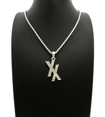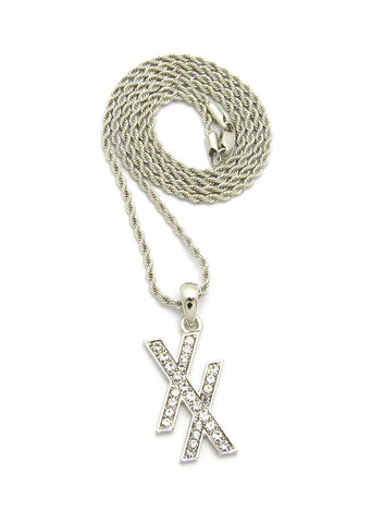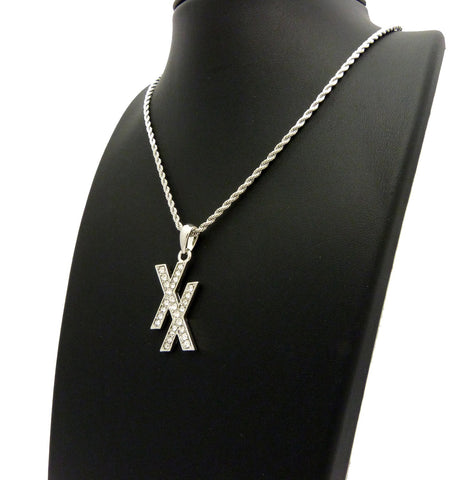 Stone Stud Double X Pendant w/ 2mm 24" Rope Chain Necklace