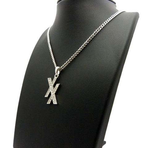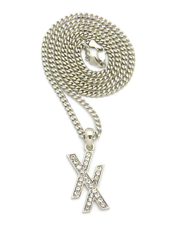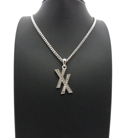 Stone Stud Double X Pendant w/ 3mm 24" Cuban Chain Necklace