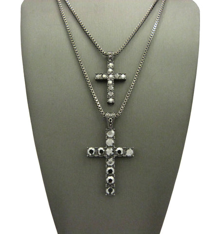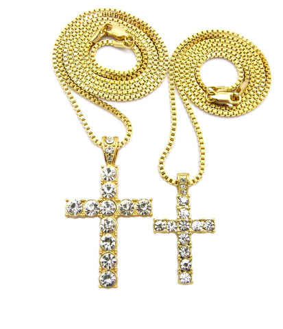 Stone Stud Single Row Cross Pendant Set w/Box Chain Necklaces