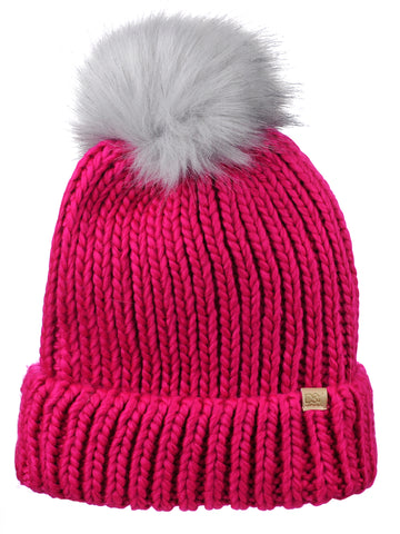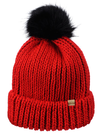 D&Y Bright Colored Chunky Knit Cuffed Style Beanie with Faux Fur Pom Finish Skull Cap