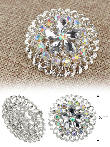 NYFASHION101 Elegant Formal Star Flower Rhinestone Studded Round Brooch Pin, Clear/Silver-Tone