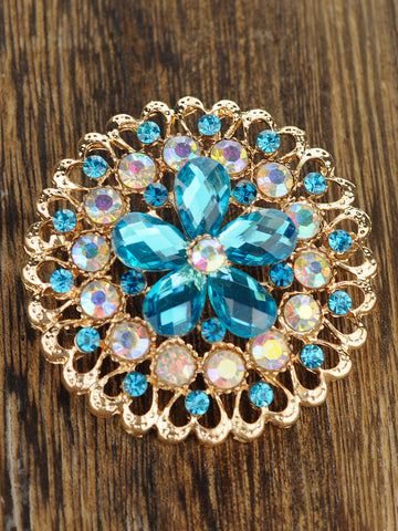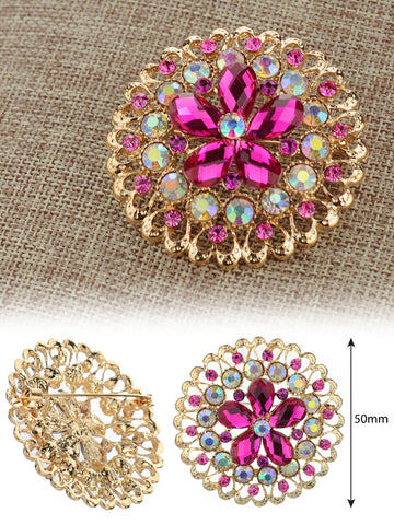 NYFASHION101 Elegant Formal Star Flower Rhinestone Studded Round Brooch Pin Set, Hot Pink/Clear/Turq/Gold-Tone