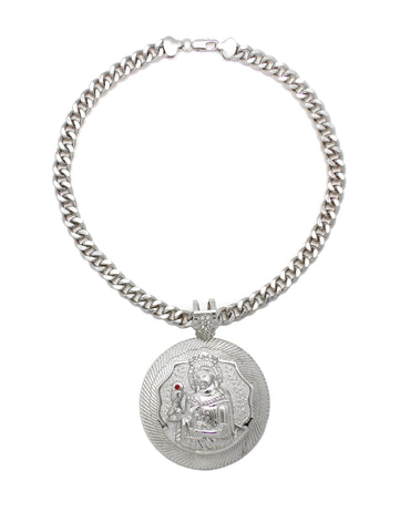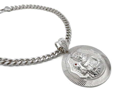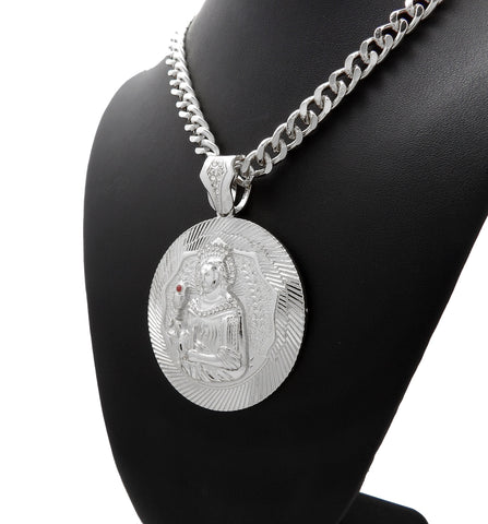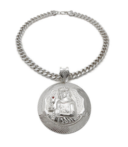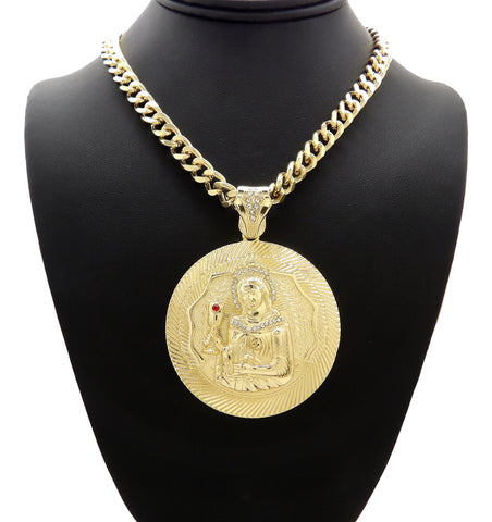 NYFASHION101 Stone Stud St. Barbara Round Pendant 9mm Cuban Chain Necklace