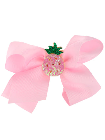 Top quality smooth grosgrain ribbon with tied bow. Traditional secure alligator clip. Sequin pineapple center for a cute addition!