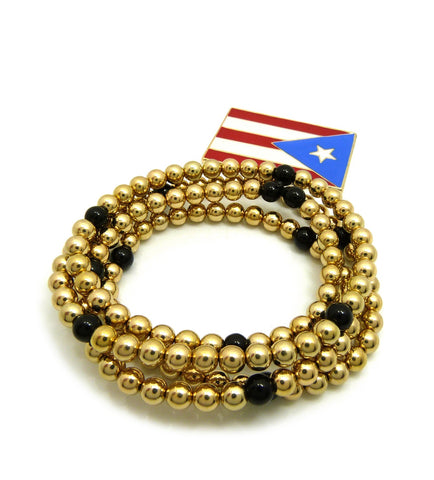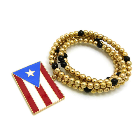 Polished Flag Pendant with 6mm 30" CCB Bead Necklace in Gold-Tone, Puerto Rico