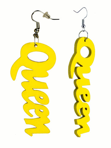 Women's Afrocentric African Text Wood Dangle Pierced Earrings, Queen