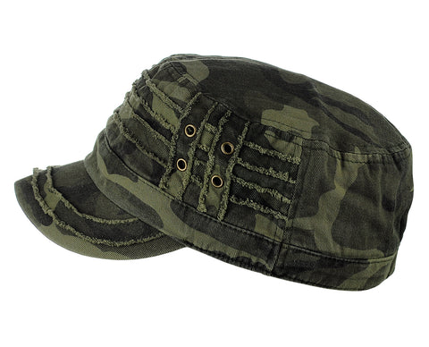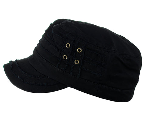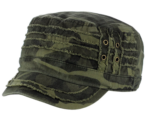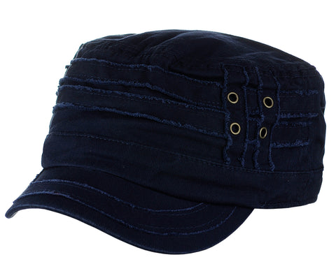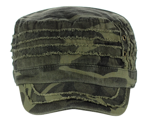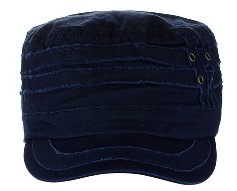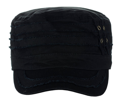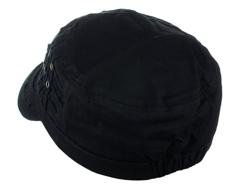 Unisex Cotton Distressed Layered Frayed Cadet Military Cap