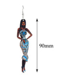 Women's Exquisite African Ebony Model Dangle Pierced Earrings, Batik Dress