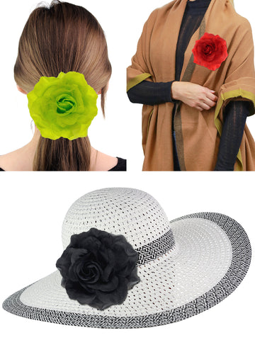 Women's Multifunction Rose Flower Sheer Petal Brooch Pin Hair Tie Clip