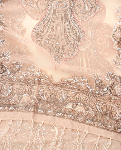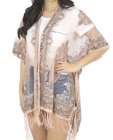Women's Paisley Burnout Tassel Ends Sheer Shawl Cardigan, Blush