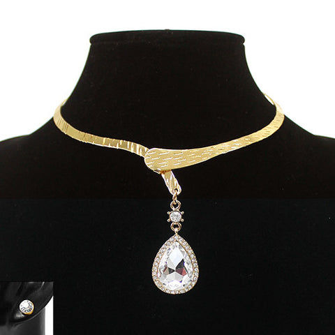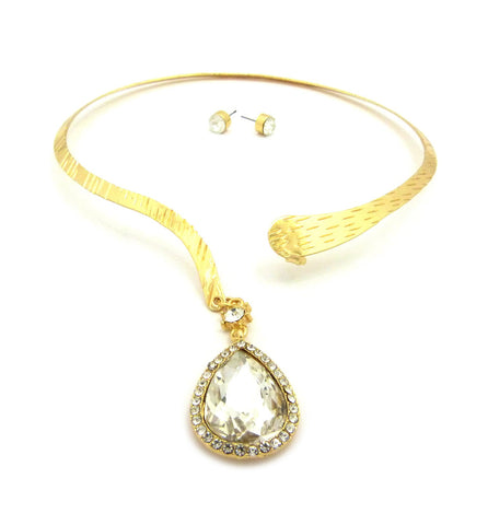 Women's Teardrop Stone Pendant Open Choker Necklace and Earring Set